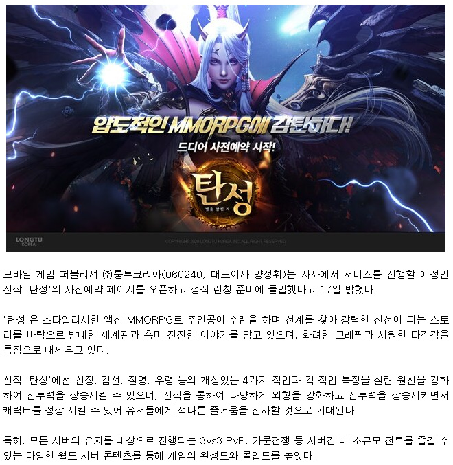 모바일게임 탄성이 사전예약중이어서