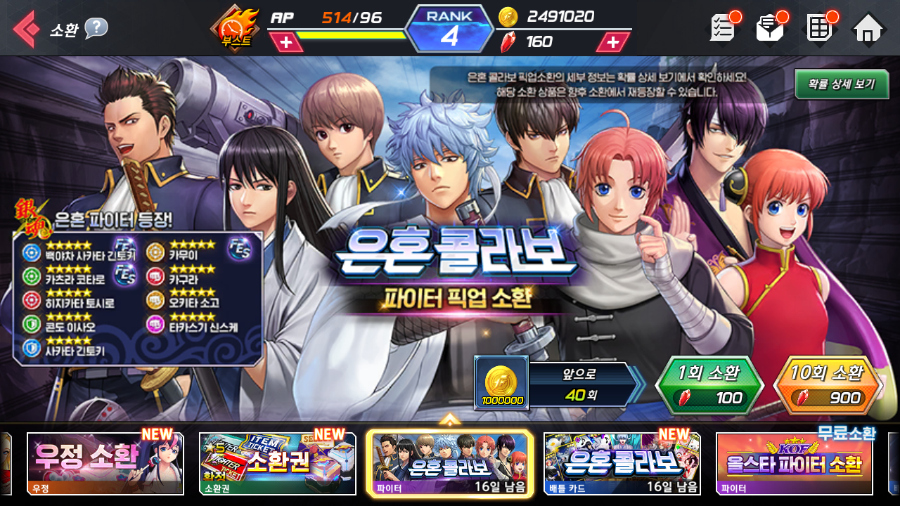 상원 킹오브 올스타 은혼 콜라보 했어옄ㅋㅋ 작성일시 : 2020. 07. 27 (16:10) 조회 : 2,536 / 댓글 : 1 이번에 킹오브 올스타라는 모바일겜에서은혼이랑 콜라보하여 은혼 캐릭터들이 파이터로 등장하는데픽업소환 말고도 주사위포인트를 모아 파이터를 얻는 이벤트도 하고 있어금방 수집할 수 있겠더라구용.일단 그리고 간만에 접속을하니 이렇게 엘리자베스도 주고 컴백유저라면서로그인 보상을 빵빵하게 주는군요.바로 귀여운 엘리자베스 얻자마자 플레이해봤는데귀여움은 기본이요 성능은 보너스~! ㅋㅋ 1추천 글쓰기스크랩 신고
