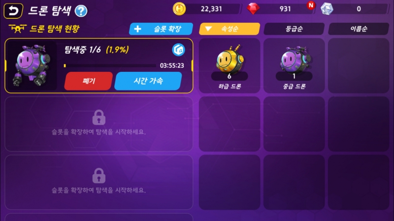 드론한테 탐사 임무 부여하면 아이템이나 히어로를 탐색할 수 있거든요