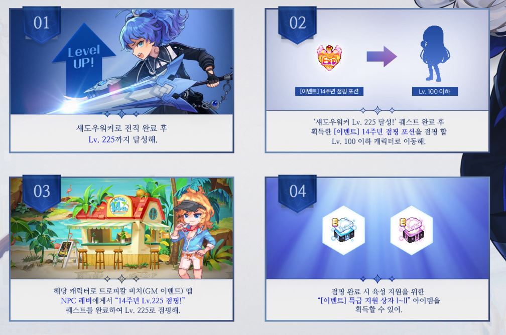 치토스 라테일 하시는분 있을까요? 작성일시 : 2020. 07. 30 (23:16) 조회 : 1,771 / 댓글 : 0 최근 라테일 신규 직업 섀도우 워커가 업데이트 되면서섀도우워커 지원 이벤트를 빵빵하게 하고 있더라구요. 섀도우 워커 레벨 225를 찍으시면 점핑 이벤트로14주년 점핑 포션을 주는데 이걸 다른 100레벨 이하 캐릭터로이동하여 트로피칼 비치 NPC 레비한테 퀘스트를 완료하면바로 225로 점핑한다고 해요 LV225가 1+1 인 셈인듯 ..ㅋㅋ그리고 점핑 완료시 이벤트 특급 지원 상자도 준다고하니 신캐로 새로 시작하기 딱 좋은 타이밍인듯.ㅎ 1추천 글쓰기스크랩 신고