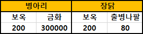 병아리와 장닭 패키지 중 선택해 받을 수 있는데
