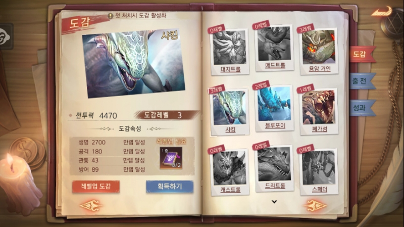 전투력만 죽어라 올리는 것보다 요즘은 몬스터 컬렉션 모으는재미가 더 쏠쏠하더라고영 ㅎㅎ