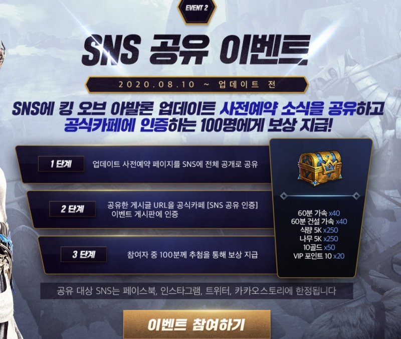 SNS에 업데이트 사전예약 공유하고 인증하면