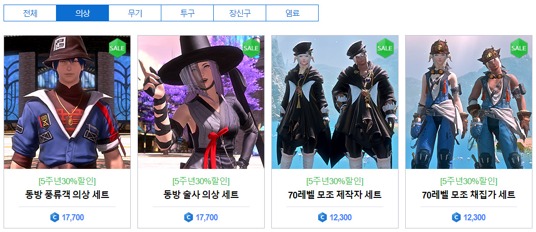 의상부터 하우징재료, 탈것, 꼬친 등 모두 할인된 가격에 구매할 수 있습니다.