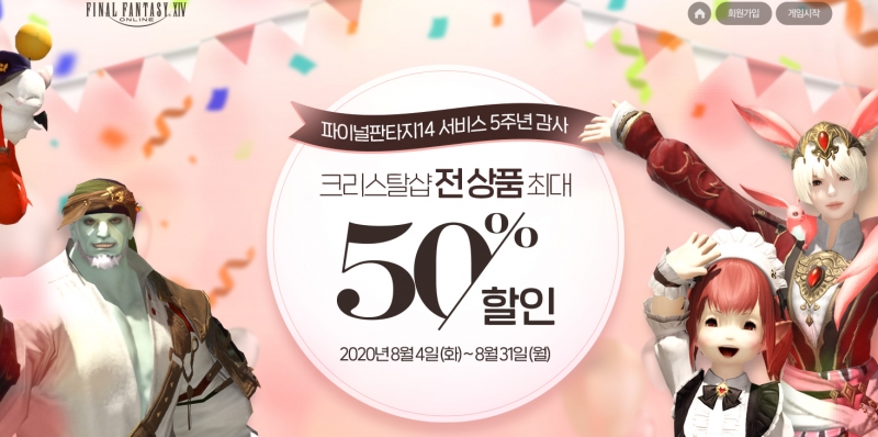 파판14가 5주년을 맞이하여 크리스탈샵 할인 이벤트를 진행하고 있어요.