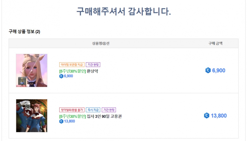환상약 1개랑 집사 3인 90일 고용권 구매했어요 :)