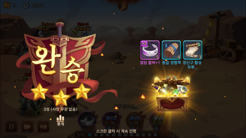 머 처음에야 어려운 스테이지를 클리어하는게 장수 배치 및 조합에 신경쓰면서 하느라