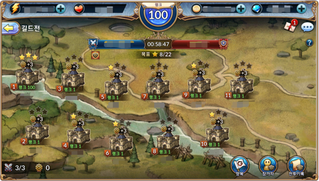 공격전 방어전으로 나뉘어져 있고 일일 3회 공방전을 하는 시스템인데