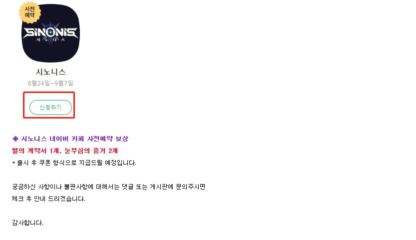 카페 사전예약 보상도 따로 있었네요