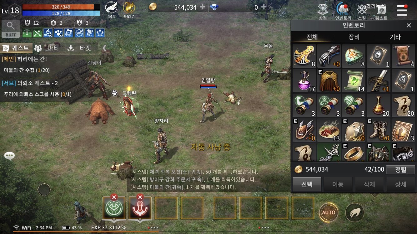 육성 같은 경우는 퀘스트 위주로 밀어주면 어렵지 않게 레벨 올릴 수 있더군요