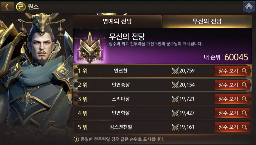 만렙까지 키운 원소는 어떨까 해서 무신의 전당에 확인해보니