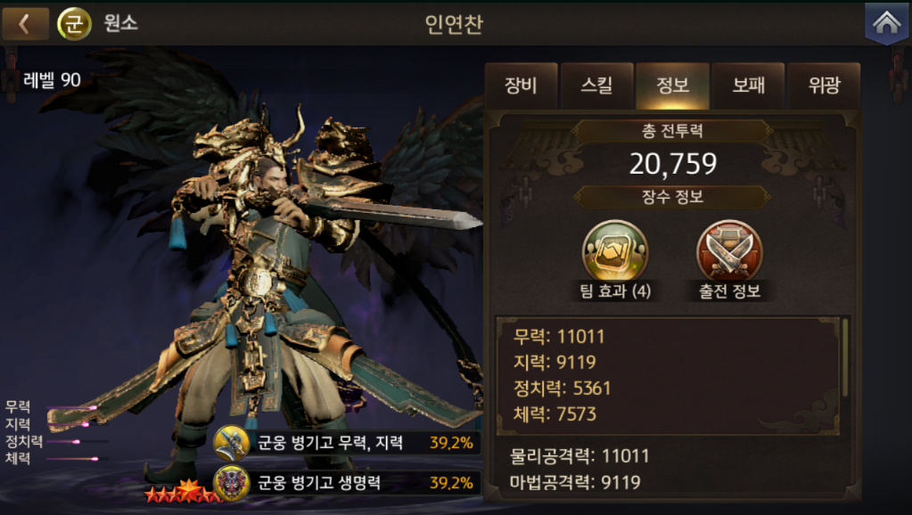 많은 능력치 중에 전투력 1.1만이 바로 눈에 들어오더군요 ㄷㄷ