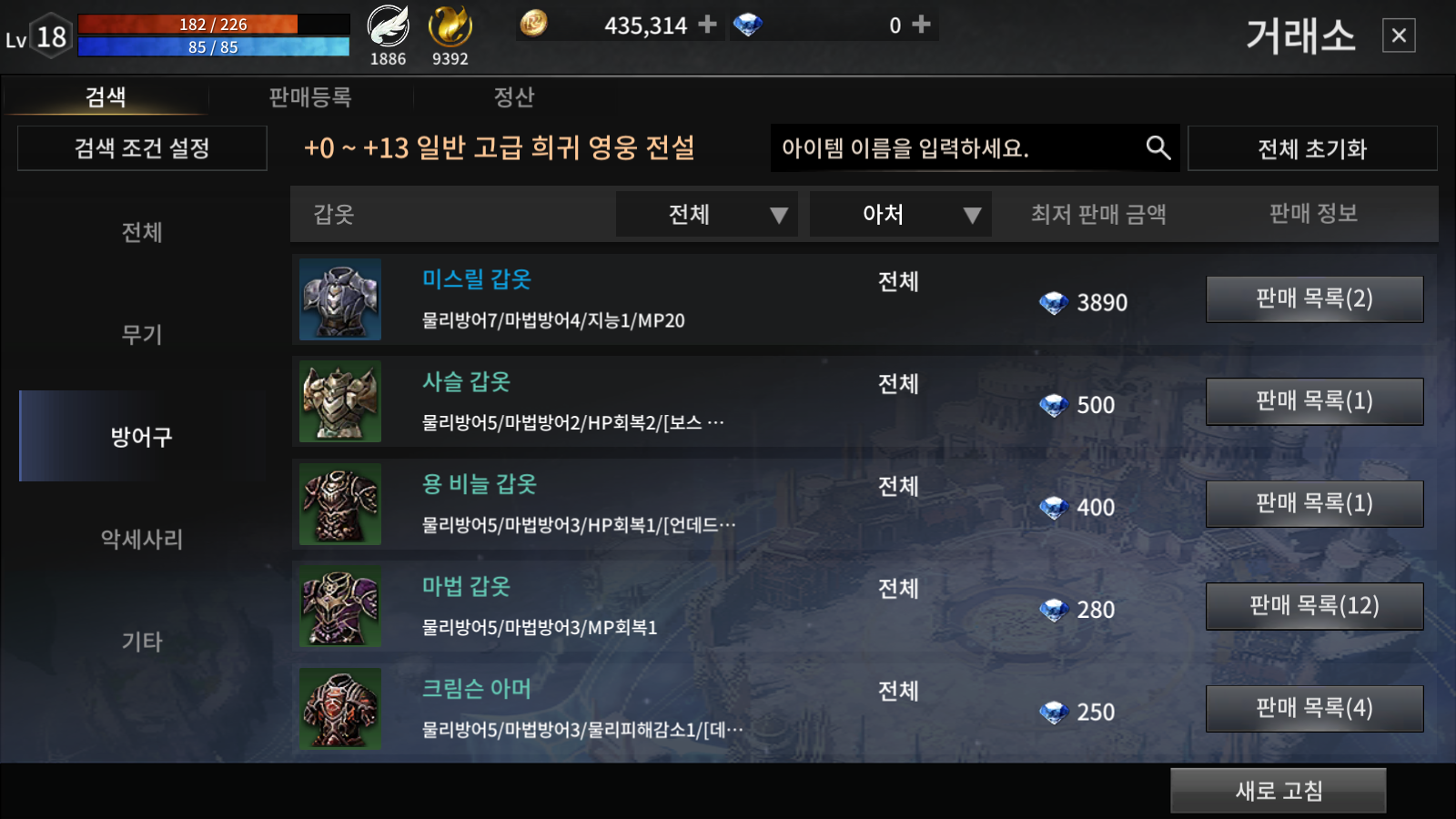 어제 업데이트로 거래소가 추가되서 필요없는 아이템을