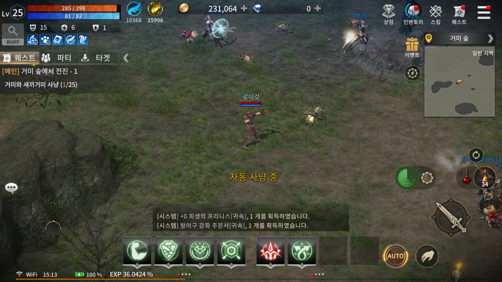 직업군에 비해 자동사냥 효율이 떨어지기 마련이고