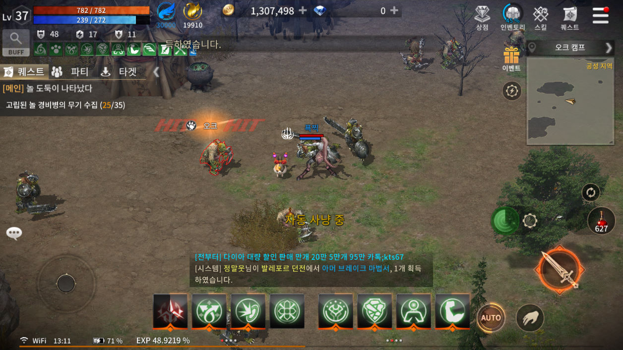 그리고 무엇보다 필드 사냥터에서 사냥하는 것도 빠르게 성장하는 방법중 최고입니다.