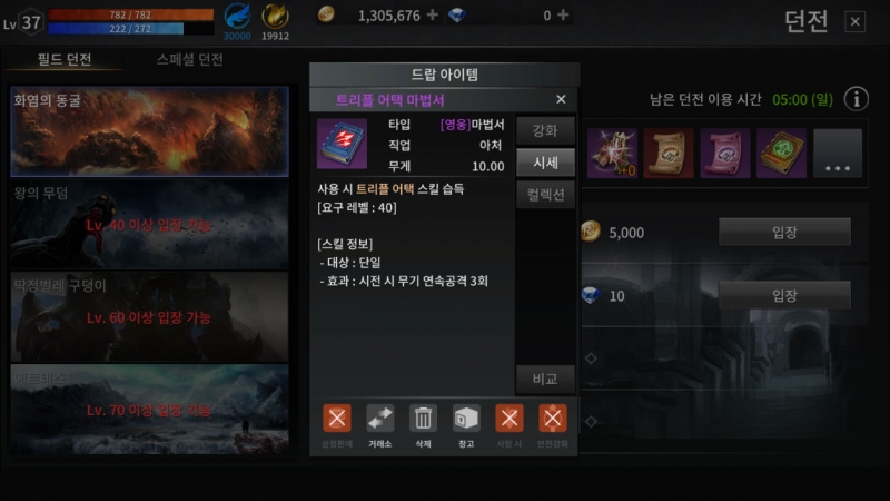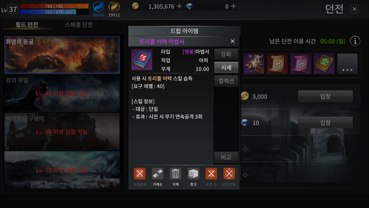 전 아처를 육성 중인데 트리플 어택 마법서 얻고 싶어 꾸준히 필드 던전 진입해 사냥하고 있죠.
