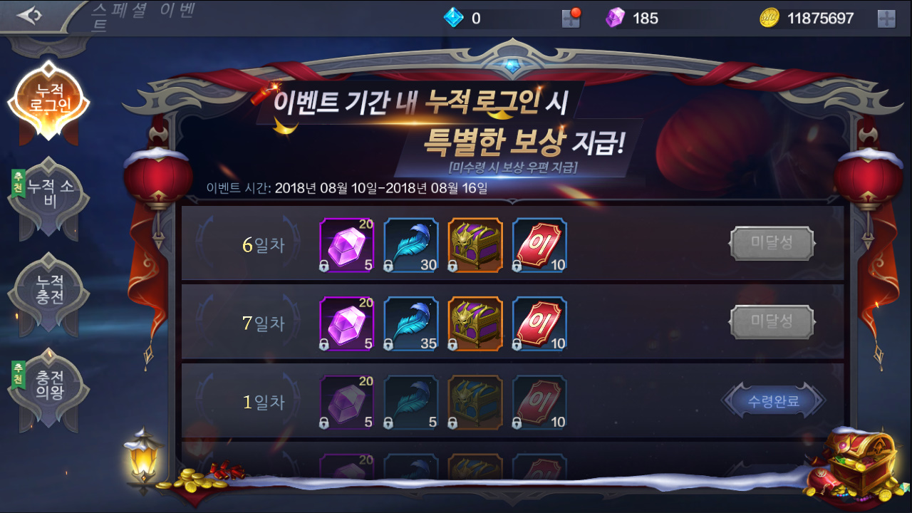 뭐 접속만 하면 주는 로제, 날개강화 재료 등이 있는데,