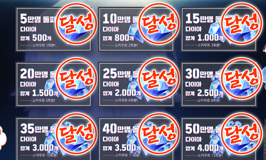 이벤트로 누적 사전예약자 수에 따라서 다이아를 준다고 하거든요!