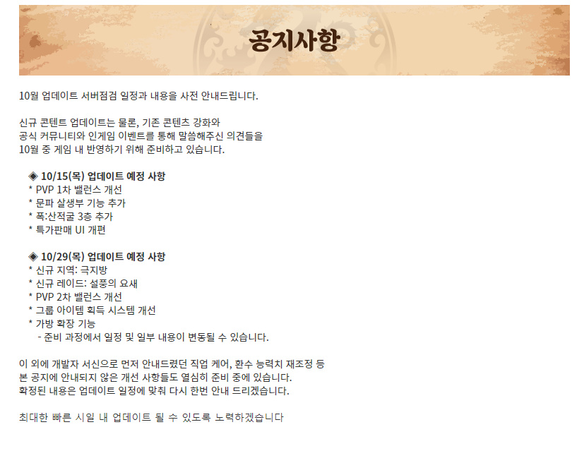 바람의 나라 연 업데이트 일정 떴어요