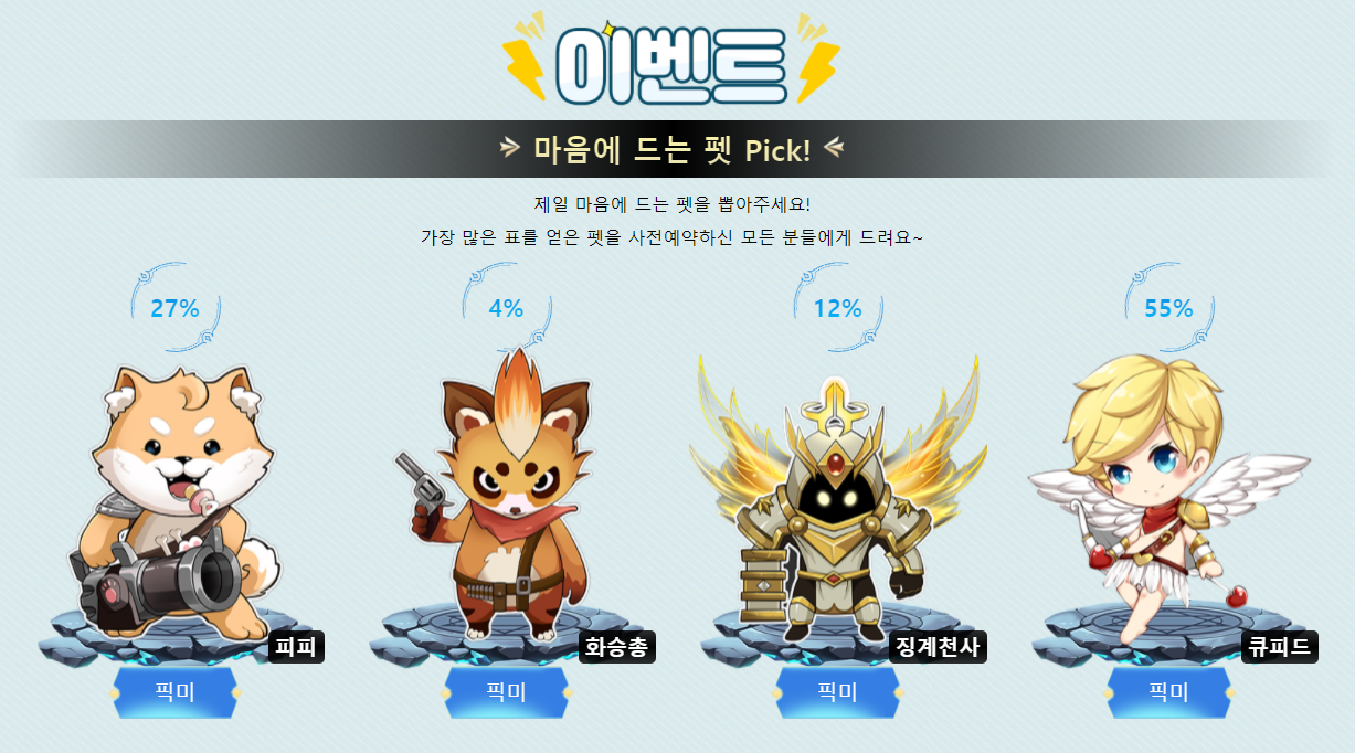펫픽 이벤트랑 사전예약도 열려서 바로 완료!