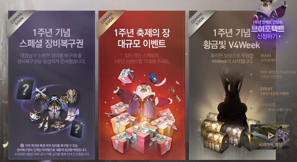 드디어 그토록 기다리던 V4 1주년 사전등록 시작과 함께