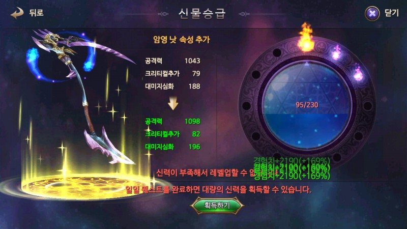 신력이라고 퀘스트 깨면 주는거 모아다가 바로 무기업가능합니다.