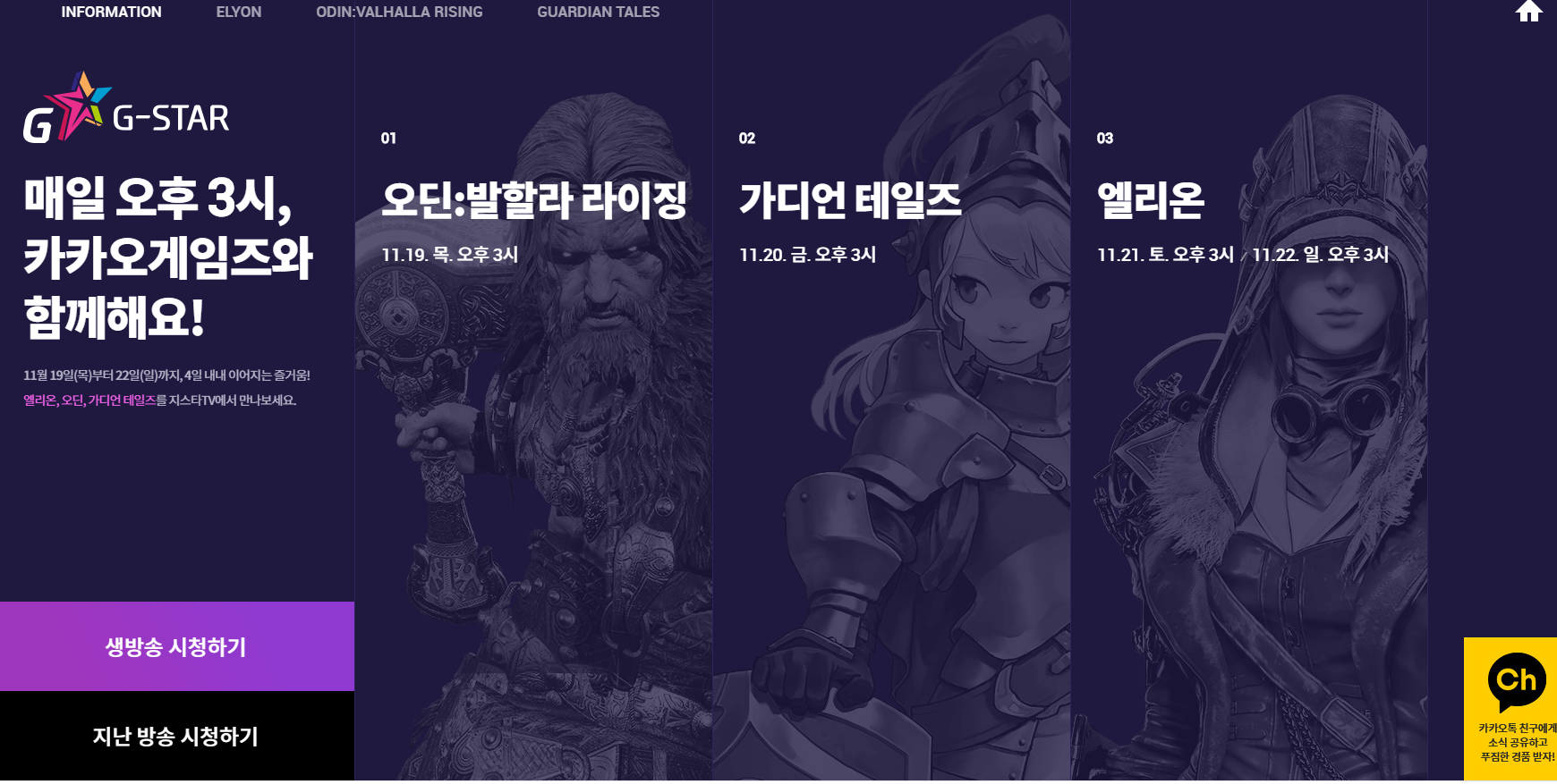 웨이 카카오 게임즈 2020 지스타 출품작 공개 작성일시 : 2020. 11. 18 (19:43) 조회 : 1,476 / 댓글 : 0 카카오게임즈자 2020 지스타 출품작 3개를 공개했는데요가디언 테일즈나 엘리온에 비해 오딘: 발할라 라이징은 아직 공개된것이 거의 없네요현재 공개되어 있는건 트레이러 영상인데 영상을 보면 그래픽이 잘빠졌더라고요 19일 오후3시에 최초 공개라고하니 내일이 기대됩니다. 1추천 글쓰기스크랩 신고