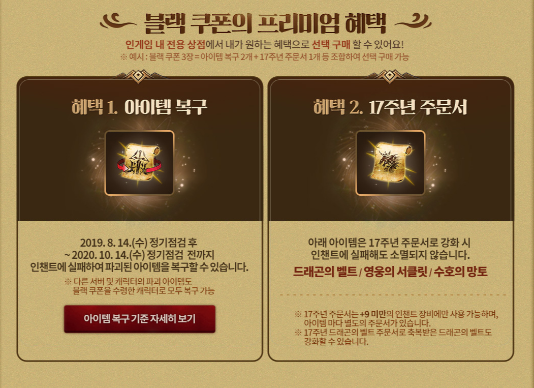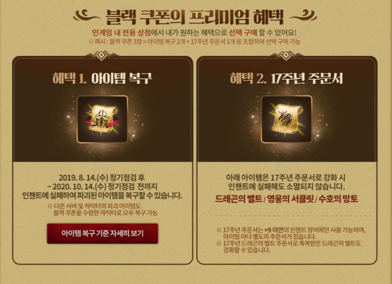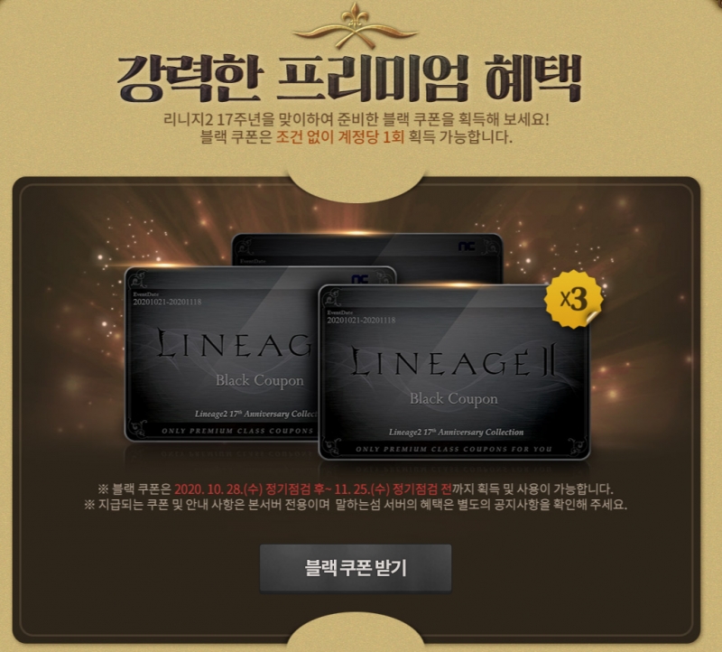 거기다가 지금 리니지2에서 17주년 기념으로 블랙쿠폰 3장을 지급하는데,