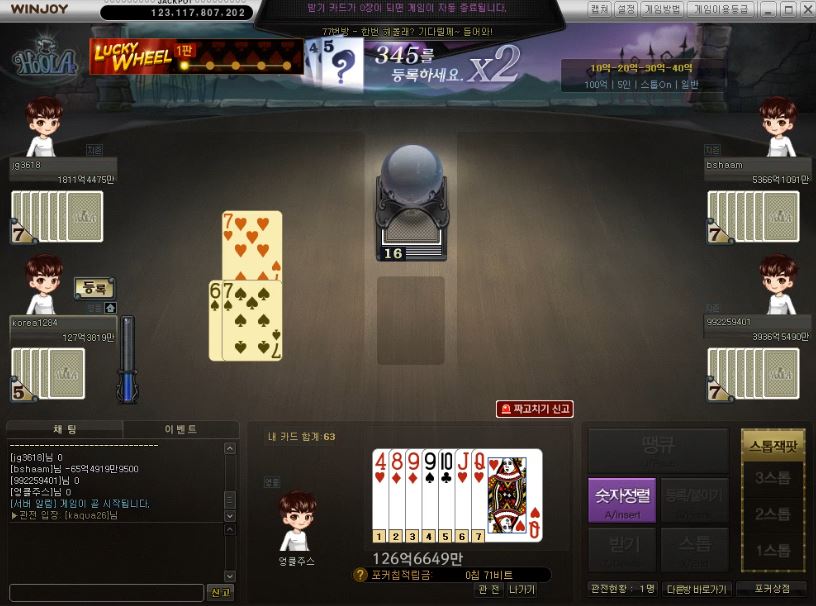 치토스 훌라 잘하시는분?? 작성일시 : 2020. 11. 23 (17:55) 조회 : 1,410 / 댓글 : 1 요새 윈조이포털에서 훌라를 치는데 훌라가 사실상 손패가 좋아야하는운게임이 맞긴 맞지만 또 받은 손패를 어떻게 잘 관리하는지가 실력이라운과 실력 모두 갖춰야하는 겜이거든요 ㅋㅋㅋ 저는 패가 땡큐노리기 좋게 받긴 했는데 원하는 패가 판위에 안올라와서등록도 못하고 등록박으로 패배해버린..ㅠ근데 저 말고도 등록박인 사람이 3명이나 되는군요.. ㅋㅋㅋㅋ여기도 혹시 훌라 잘치시는분 계신가요?친구들이랑 실제로 가끔 쳐도 재밌는데... 1추천 글쓰기스크랩 신고