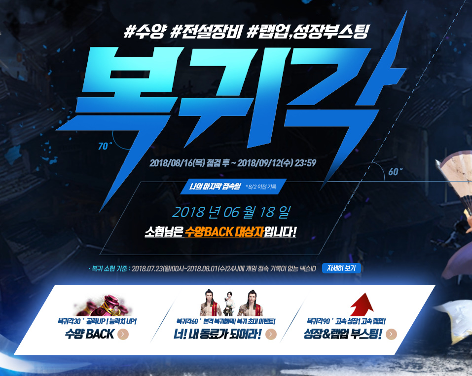 그리고 복귀 유저들을 위해서 이벤트도 엄청 다양하게 하고 있어요!