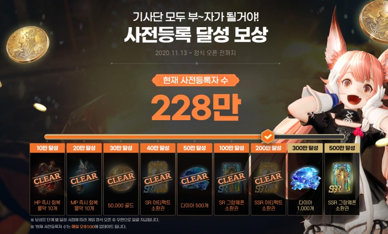 그랑사가 사전등록 인원수가 벌써 200만 돌파하고 228만명이네요.