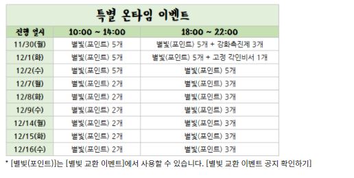 별빛 포인트를 주는 특별 온타임 이벤트와 넥슨 게임을