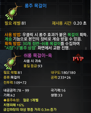 신규 롱주 목걸이도 나오는데 목걸이 치명피해 능력치 상승하는 거더라고요