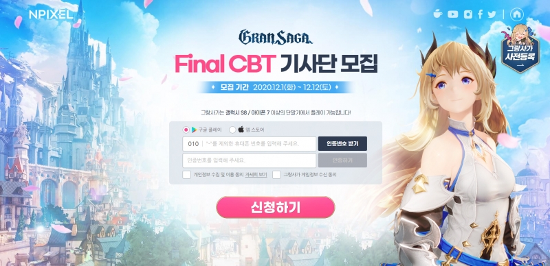 이번에 그랑사가 접하게 되면서 CBT 하면 좋겠다고 생각하긴 했는데 이번에 딱 신청 받더라고요?