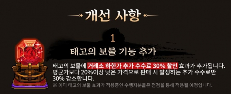치토스 바람의나라 연 업데이트 소식 작성일시 : 2021. 01. 07 (19:17) 조회 : 2,034 / 댓글 : 1 바람의나라 연이 최근 업데이트되서이번에 선우의 무덤 고레벨 사냥턷도 추가되고무기각성도 새로 생겼네요 또 태고의 보물 기능이 추가되서 무려 거래소 하하가 추가 수수료 30%나 할인 효과가 생기고신축년을 기념해서 2011 신축년 교환소 이벤트도 하고 있는중입니다.저도 얼른 레벨업해서 선우의 무덤에서 파밍해보고 싶네요. 1추천 글쓰기스크랩 신고