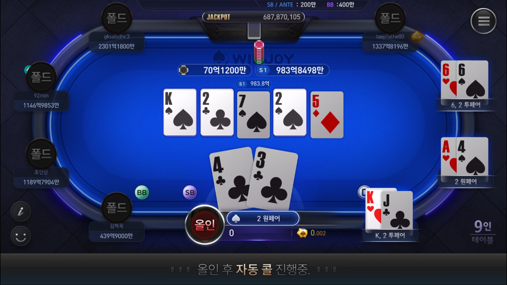치토스 윈조이포커 모바일홀덤 치는데.. 작성일시 : 2021. 03. 02 (13:18) 조회 : 2,198 / 댓글 : 1 이거 첫패는 상당히 좋은편인거 같아서일단 플랍전부터 올인베팅 갔거든요 ㅋㅋㅋㅋㅋ뒷일은 모르지만 뭔가 삘이와서 한번 걸어보자 싶었는데.. 이거 뒷심이 빠져버린..ㅜ 플랍에서 2 나오길래스트레이트 또는 잘하면 플러시도 보겠다싶었는데 2원페어에서 그쳤군요. 액땜했다치고다음판 돌리러가야할듯.. 1추천 글쓰기스크랩 신고