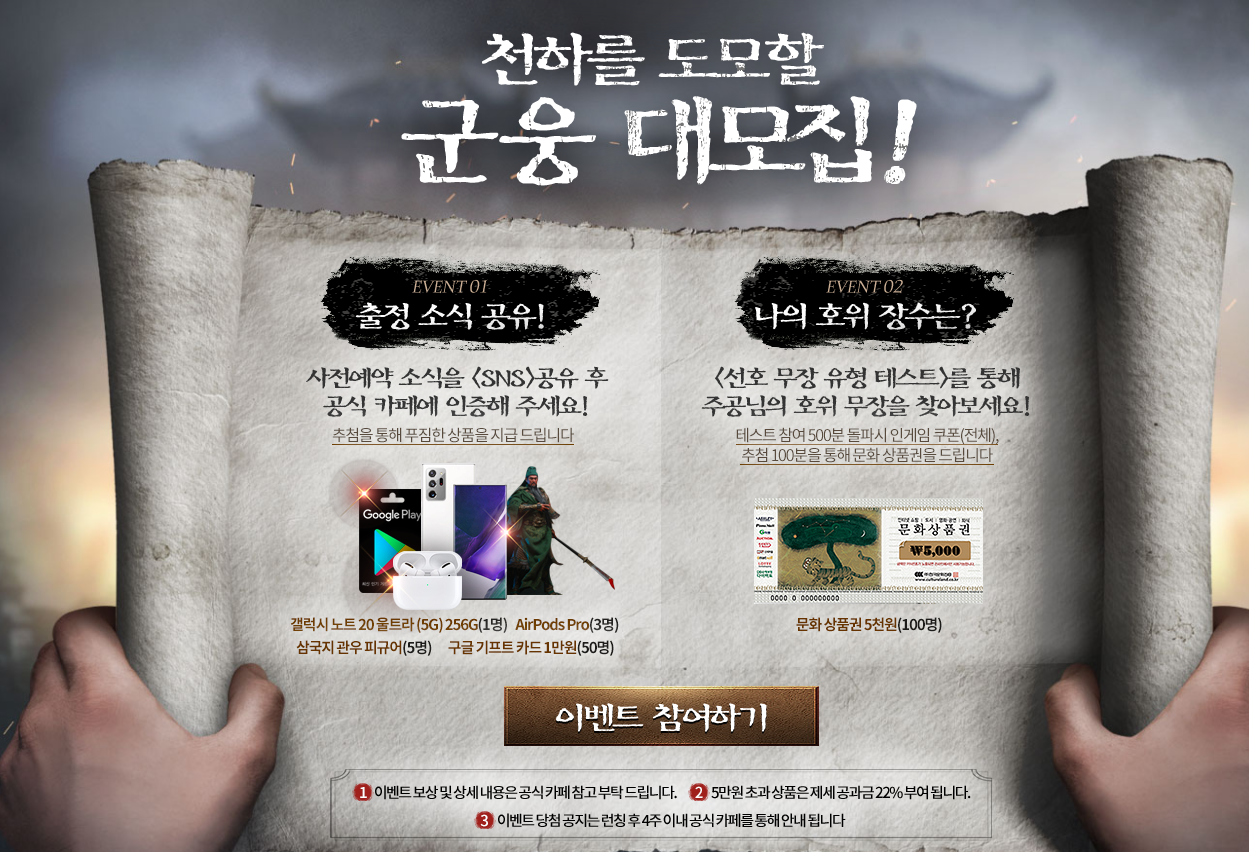 흑돼지 이번에 삼국지혼이라는 게임이 사전예약중인데 작성일시 : 2021. 03. 03 (17:35) 조회 : 1,662 / 댓글 : 1 삼국지혼 이라는 게임이 사전예약을 진행하고 있어요유튜브에 사전예약 공식영상이 올라왔는데,3D로 삼국지가 준비되어있는게 눈에 띕니다.어떠한 형태의 게임이 진행될지 궁금합니다.지금 사전예약과 CBT 인원 모집을 동시에 진행하고 있는데,이번기회에 사전예약도 해놓고 이벤트 참여해서갤럭시노트도 받아보면 좋을것 같습니다 ㅎㅎㅎ요즘 할 게임도 별로 없었는데찍먹각 한번 잡아봐야겠는 ㅎㅎ 2추천 글쓰기스크랩 신고