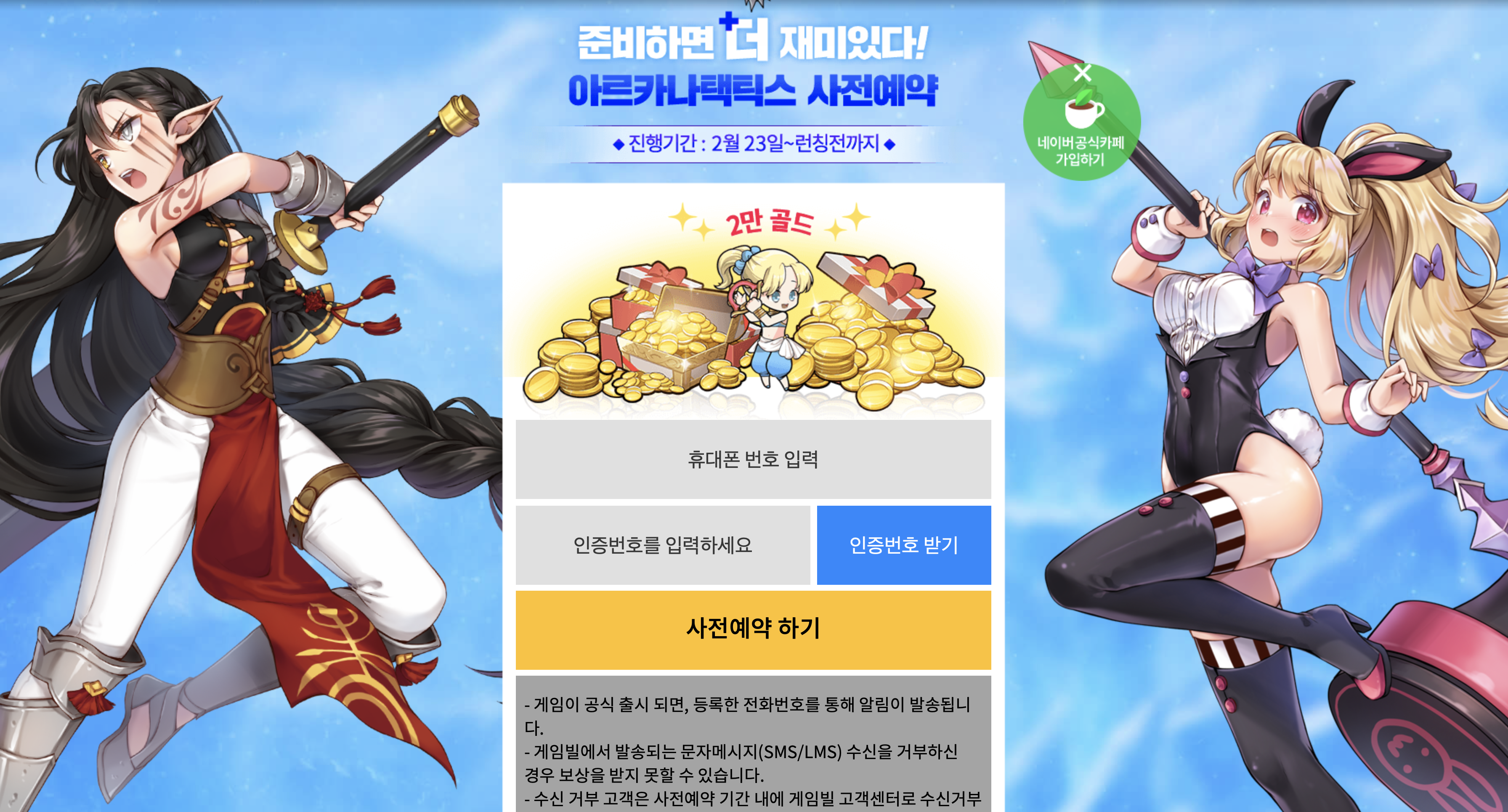 아르카나 택틱스 사전예약에 참여할 경우 2만 골드를 획득할 수 있는데요.