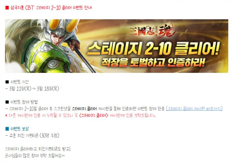 스테이지 2-10 인증하면 추첨으로 교촌 쿠폰준다는데