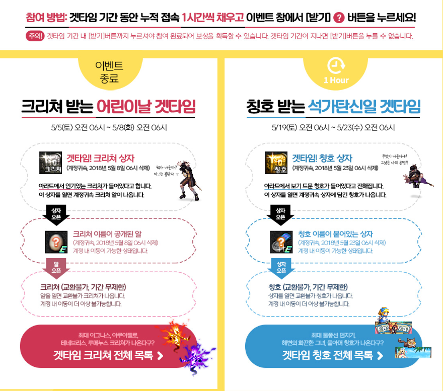 그리고 석가탄신일 이벤트로 딱 1시간만해도 칭호 상자를 주는데
