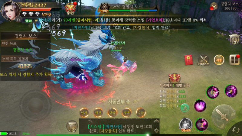 자동 돌려놓고 어느새 보면 레벨 엄청 올라가 있어서 편해요