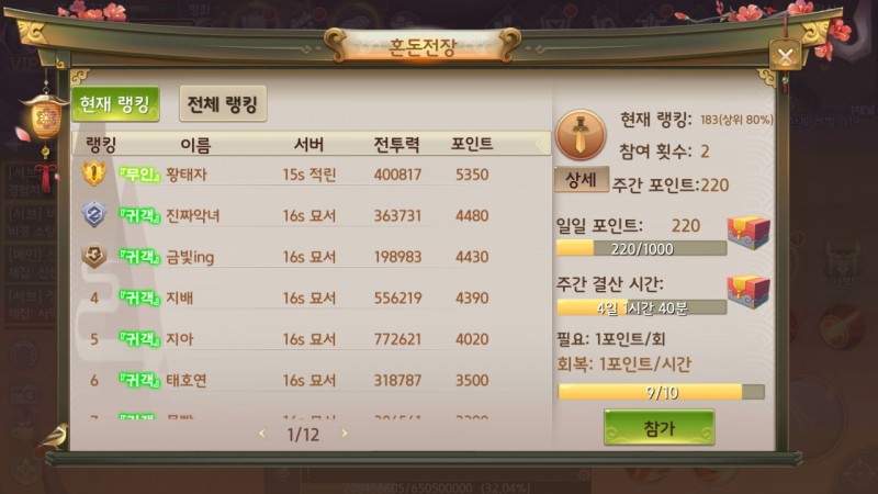 그래서 계속 싸우는건데.. 강한 분들은 한판에 500점 씩도 챙기더라구용..?