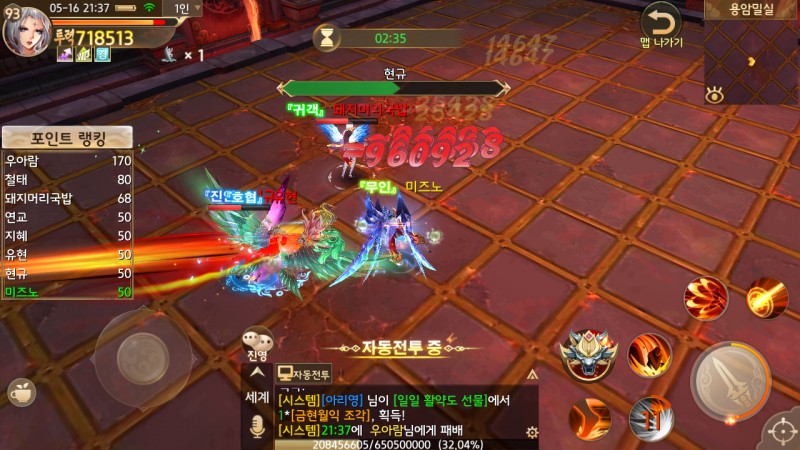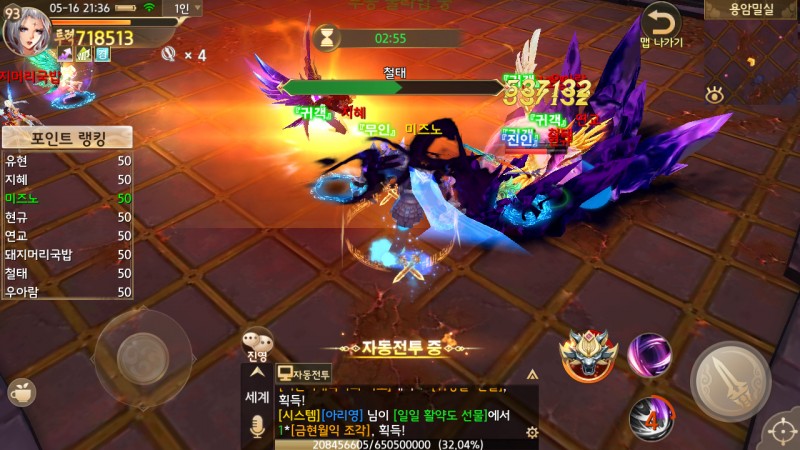 특히, 많은 사람들이 계속 싸우니 타격감도 있고 컨트롤이 어려울 때는 자동 전투로 켜놓고 플레이 해도 좋답니닷.