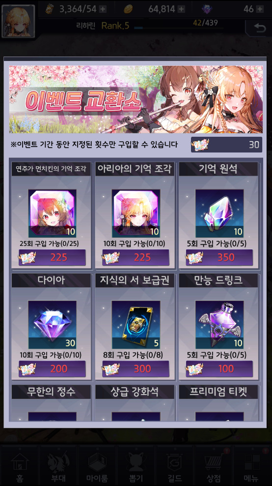 아라리용 야생소녀 이벤트 스토리 열심히 깨고 있는 중입니다. 작성일시 : 2021. 04. 08 (18:39) 조회 : 2,649 / 댓글 : 0 다시 야생소녀 복귀했습니당 ㅎㅎㅎ1주년이라고 소문 돌길래 복귀했는데 현물 이벤트 엄청 많길래 다 참여하고 있네용사이드 스토리 꺠면 다키마쿠라 10개 추첨해서 준다고 하고 미션 클리어 이벤트 모든 임무 완수하면 문상도 주고출석부 완성하면 10명 추첨해서 금반지도 준다던데 뭐든 당첨됐으면 좋겠어요일단 출석 하루도 안빠지고 다 하고 사이드 스토리 다 깨보려구요 다른건 크게 안바라고 일단 이거라도 당첨 됐으면 ㅎ.... 1추천 글쓰기스크랩 신고