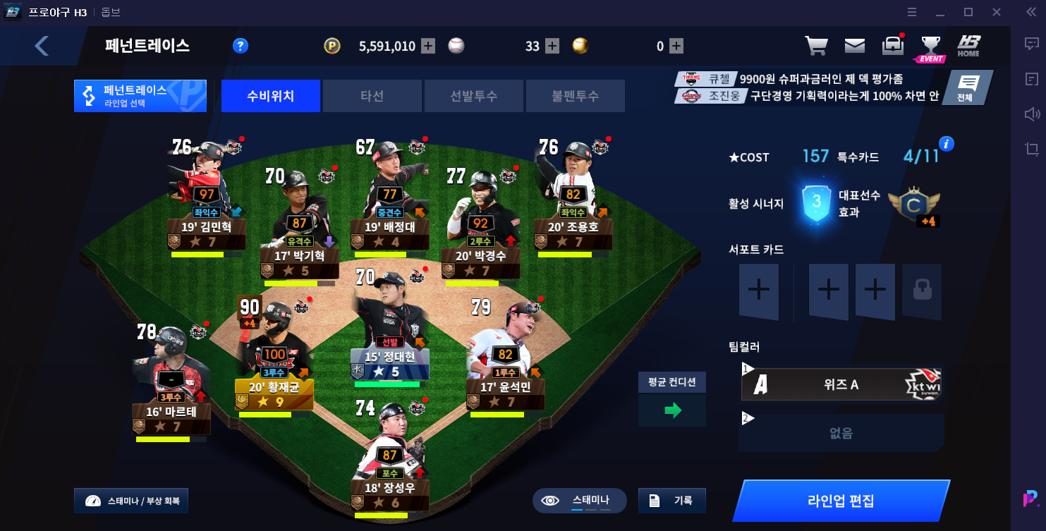 아흑 또르륵 오늘 h3 경기 결과 ㅠ 작성일시 : 2021. 04. 15 (15:17) 조회 : 2,444 / 댓글 : 1 h3 프로야구...오늘의 경기 결과그래도 승이 더 많다 헤헷 ㅋㅋㅋㅋㅋㅋ요즘 야구시즌이라 매니지먼트 겜 할까 하다가h3 딱 런칭해서 해봤는데 손이 계속 가네요이거시..팬심이라는 것인가 나의 kt위즈 구단 처참하다하지만 황재균과 장성우, 마르테, 윤석민이 있지!근데 로하스랑 데파 얻고 싶습니다 형님들 ㅠ 3추천 글쓰기스크랩 신고