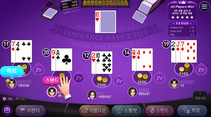 카톡 윈조이플러스 블랙잭 ㅅㅅ 작성일시 : 2021. 04. 20 (13:04) 조회 : 2,466 / 댓글 : 1 시작부터 9랑 A 잡혀서 아 이건 20 됐다 안심하고 바로 스탠드 했습니다 ㅎ막판까지 고민하고 고민하다 히트해서 20 넘길 자신이 없어서 느즈막히 스탠드했는데확실히 윈조이 플러스가 PC 전용 앱플레이어답게 최적화가 좋아서아슬아슬하게 눌렀는 데도 끊기는 거 없이 인식이 됐어요그리고 딜러는 19 ㅎ이 맛에 블랙잭하죠 ㅋㅋㅋㅋ왼쪽 21 성공하신 분이랑 저만 이겼습니다 ㅎ 2추천 글쓰기스크랩 신고