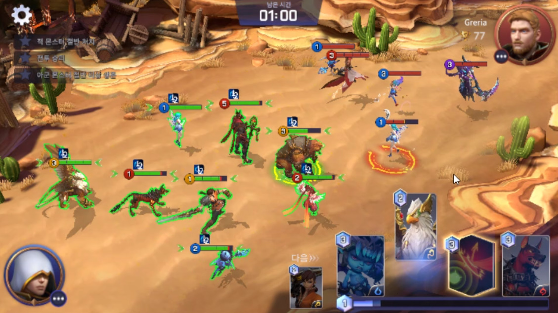 꾸쀼쀼 서머너즈워 백년전쟁 플레이 중 작성일시 : 2021. 04. 29 (19:03) 조회 : 2,105 / 댓글 : 1 서머너즈워 백년전쟁 오늘 정식 오픈해서 플레이 중이 게임 실시간 전투하는 건데 재밌더군요상대 매칭 되면 이렇게 전투에 들어와서 편성해둔 캐릭터끼리전투하는 방식으로 진행되고 있습니다 아직 플레이 해보는 중이라 어떤 캐릭터가 좋다 말은 못하지만저는 일단 전열, 후열 이렇게 편성해두고 있어요이렇게 했는데 생각보다 무난하게 이겨서 저는 초반은 이렇게 밀 듯 3추천 글쓰기스크랩 신고