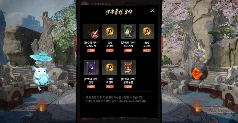 보니까 연속출석 보상이랑 기억으로 포인트 모으는 것 같은데