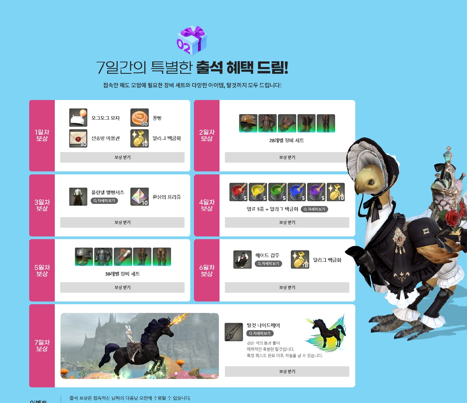 우선 7일동안 출석만 해도 주어지는 아이템들이