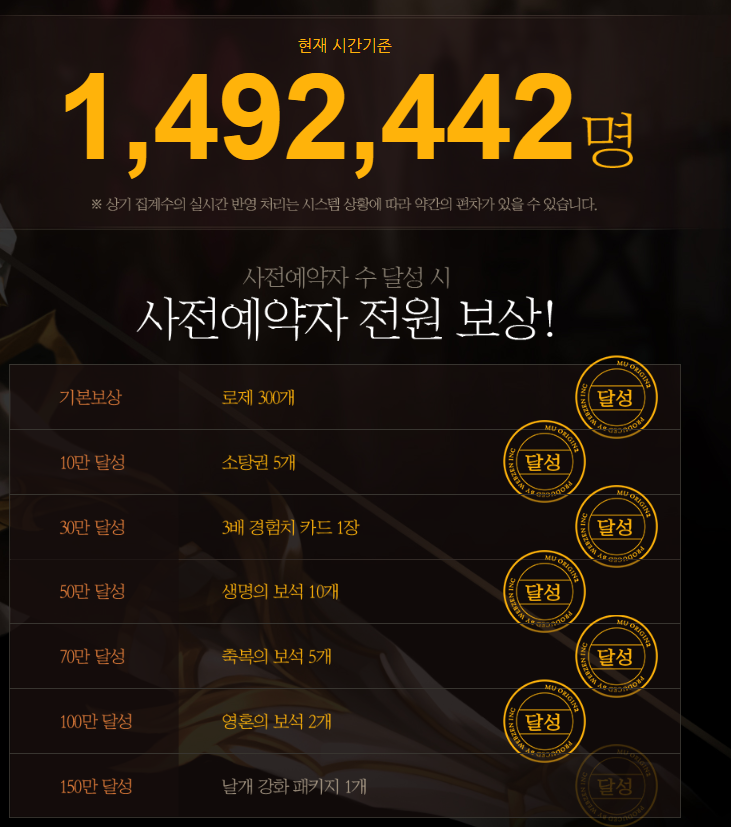 현재 149만명이고 150만명이 넘으면 날개 강화 패키지도 얻을 수 있어서